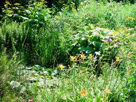 Diese Einrichtung hat sich als sehr nützlich für die Natur in unserem Garten ausgewirkt: Schon bald kamen Zuwanderer zu uns. Erst waren es die Teichmolche und Gelbbauchunken sowie diverse Libellenarten, später auch Laubfrösche und Grasfrösche. Natürlich haben auch die Ringelnattern begriffen, was es hier alles gibt. In der letzten Zeit haben sie dem Froschlaich arg zugesetzt.