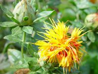 Die Färberdistel kommt ursprünglich aus Asien und hat sich in Mitteleuropa schnell verbreitet. Kultiviert wird sie heute hauptsächlich zur Gewinnung des Distelöls. Der Farbstoff ist in den roten Blüten enthalten. Sie können goldgelb bis goldgrün färben. Wie der Name schon sagt wird diese Pflanze aber auch zum färben (Carthamin: gelber und roter Farbstoff) verwendet. Sie läßt sich auch trocknen und für Wintergestecke verwenden.