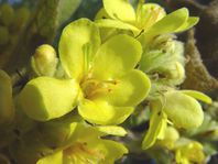 Die Großblumige Königskerze ist eine zweijährige, bis zu 3 m hoch wachsende Pflanze mit großen, grauweißen Rosettenblättern. Die bis zu 5 cm großen, hellgelben Blüten sitzen in einer langen, ährenartiger Traube.