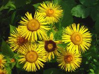 Die Telekie ist eine großlaubige, sehr ansehnliche und überaus dankbare Wildstaude. Sie wird bis zu 1.5 Metern hoch und hat orange-gelbe Blüten, ähnlich dem Alant. Sie macht sich in unserem Garten äußerst gut als Solitärpflanze und zieht immer wieder Blicke der Verwunderung auf sich.