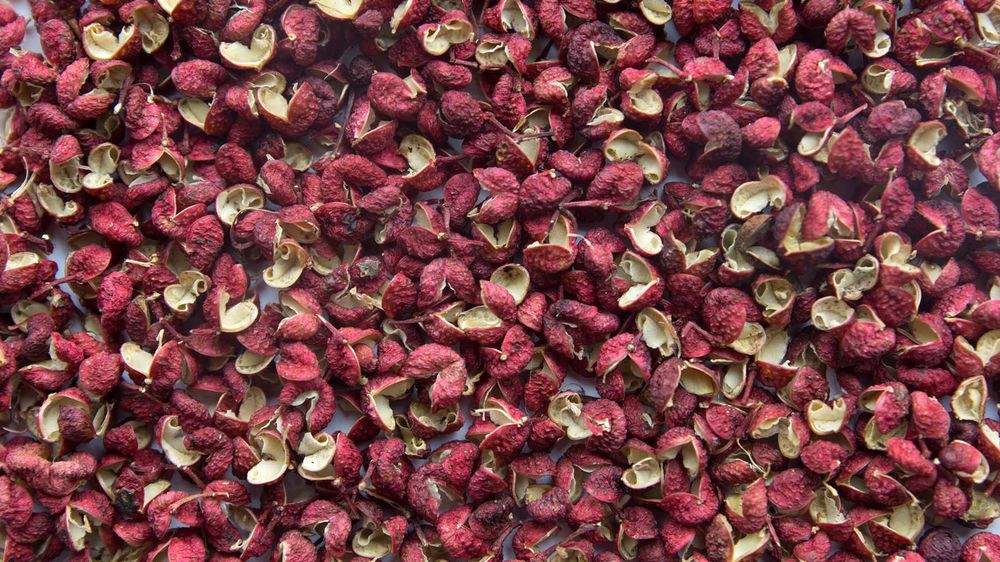 Als Gewürz werden eigentlich nur die getrockneten und von den Samen befreiten Fruchtschalen verwendet. Zanthoxylum schinifolium ist sehr aromatisch, die eigentlichen Samen sind fast geschmacklos und werden nicht verwendet. Die Schalen sind von rotbrauner oder bräunlicher bis schwärzlicher Farbe und stark gerunzelt. Erntezeit der reifen Früchte des Szechuanpfeffers ist im August, die Früchte werden anschließend bei 40 bis 60 °C getrocknet. Teilweise werden die Fruchtschalen gemahlen und als Gewürzpulver verwendet. Meist werden jedoch die ganzen Fruchtschalen verkauft und erst vor der Zubereitung der Gerichte selbst gemahlen.