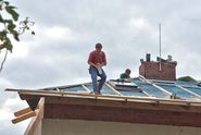 Der größte - zumindest der aufwendigste - Brocken war der Dachumbau im Oktober 2011. Um nicht von schlechtem Wetter überrascht zu werden, haben wir die Dachsanierung seitenweise durchgeführt. So konnte jeden Tag eine Seite fertiggestellt werden.