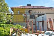 Alles neu macht der Mai - so auch bei uns. Nachdem die Gehsteige eliminiert waren, konnte der Vollwärmeschutz aufgezogen werden. 14cm Dalmatinerplatten ergeben eine gute Dämmung. Anfang Juni war die Zeit reif, um den Reibeputz aufzubringen. Nun kamen die nächsten Schritte der Sanierung ...