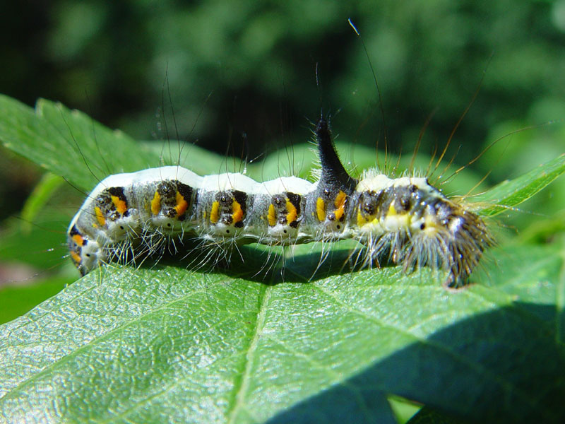 Wissenswertes: Von den drei Arten ist Acronicta psi die häufigste, es gibt auch dunklere Formen!. Der obere Längsstreifen kann weißlich (mit gelb-orangen Seitenflecken) oder gelb (mit orange-roten Seitenflecken) sein.